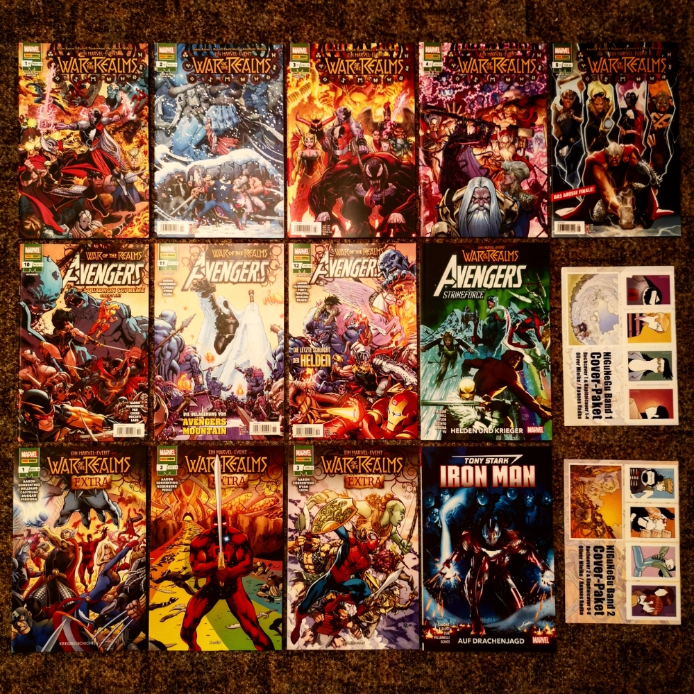 In dieser Woche gab es eine Lieferung mit dem (fast) kompletten War of the Realms-Event. Danke hierfür noch einmal an Oliver Mielke, der auch gleich die zwei InfoFlyer für die NiGuNeGu-Cover Pakete hineingepackt hat.