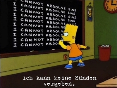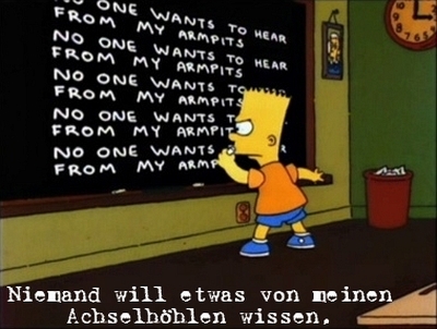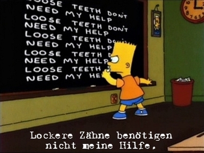 Diesmal bleiben mir doch glatt die Worte bei dem heutigen Tafelgag weg, aber vielleicht kann mir ja jemand von meinen Lesern helfen und das Geschreibsel auf der Tafel übersetzen. Für alle anderen hier nur der nächste Simpsons Tafelgag.