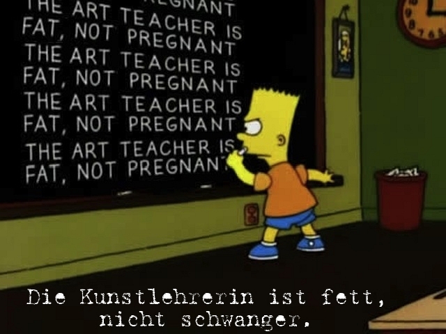 Heute ist in vielen anderen Bundesländern ein Feiertag. Und ab morgen gibt es dann die nächste Staffel der Simpsons-Tafelgags, denn mit dem heutigen neuen Simpsons-Tafelgag, endet die 19. Staffel.