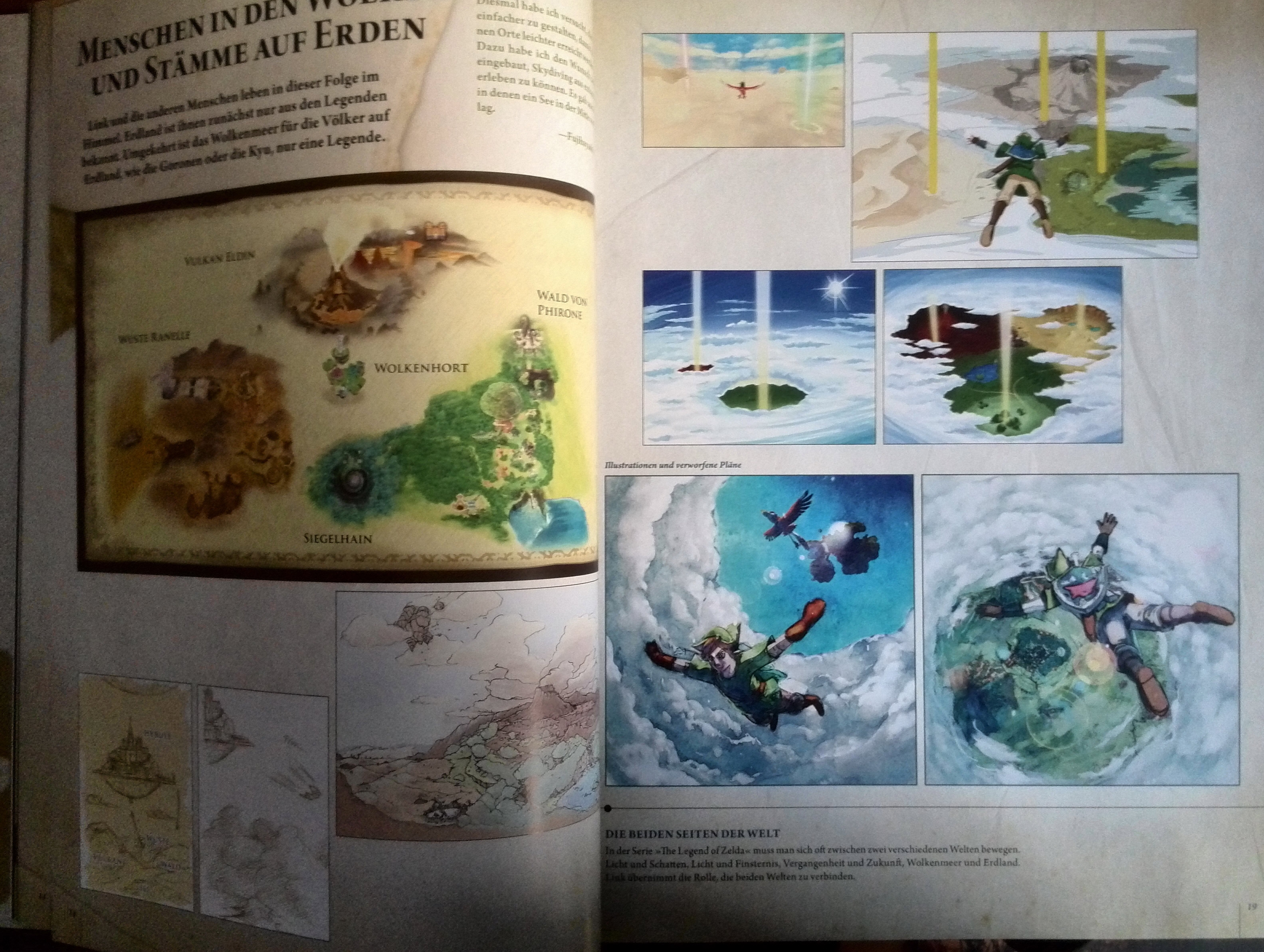 Schlägt man die erste Seite auf, erblickt der Leser ein zweiseitiges Bild, so als ob man nun in das Buch hineingesaugt wird. Viel Spaß mit The Legend of Zelda – Hyrule Historia (Artbook):