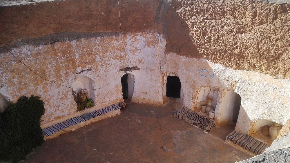Matmata ist bekannt durch mehrere Höhlenwohnungen. Die Menschen leben dort in Höhlen, im Sommer kühl, in der kälteren Jahreszeit angenehm warm. Einige Menschen wollen vermutlich diese Höhlen nicht in angrenzende Dörfer oder Städte verlassen, sie sind dieses Leben scheinbar gewohnt. Die Erdwohnungen haben alle in der Mitte einen zentralen offenen Platz. Von diesem Platz gehen die einzelnen Räume und Kammern aus. Wir haben uns eine Erdwohnung und ihre Räumlichkeiten einer einheimischen Familie anschauen dürfen.